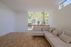 大きな開口部からは、公園の緑を借景として取り込んでいます。