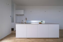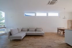 水平ラインが強調されすっきりとした印象で、大きな窓との組み合わせでとてもいい表情です。